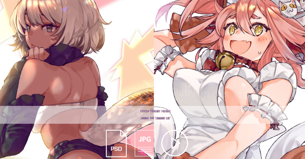 Patreon Reward Pack "Himiko and Tamamo Cat" (jpg. + timelapse + PSD. file) SET 2